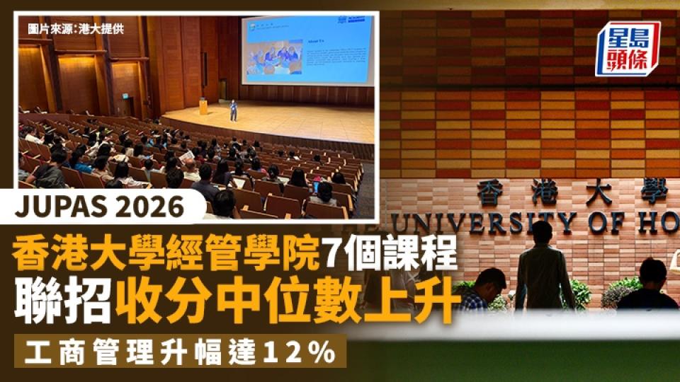 香港大學經管學院7個課程聯招收分中位數上升,工商管理升幅達12%.