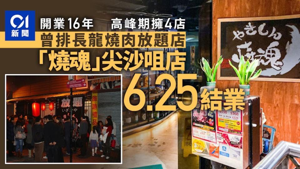燒肉放題店(燒魂)尖沙咀店6.25結業,