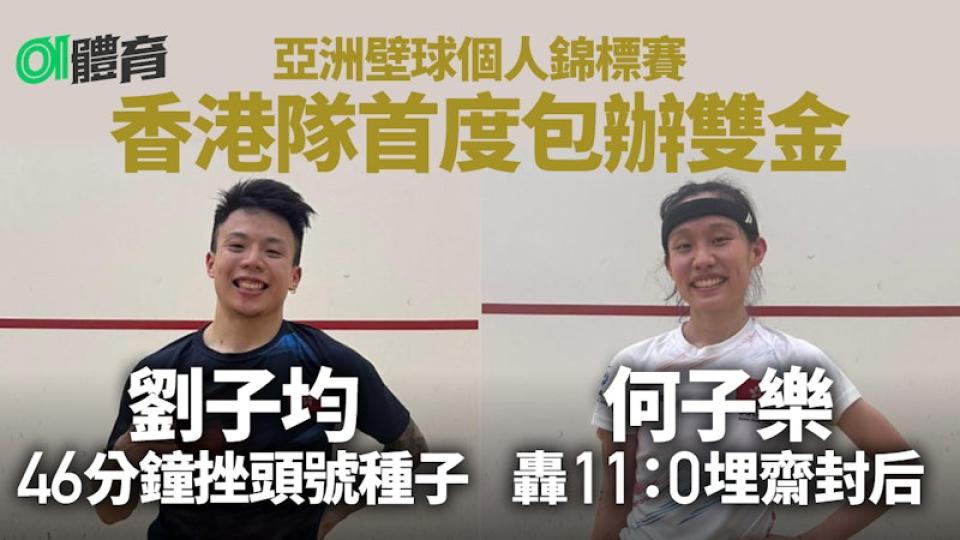 壁球亞錦賽:港隊首度包辦男女子金牌,劉子均、何子樂齊挫頭號種子.