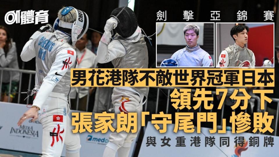 劍擊亞錦賽:男花港隊不敵世界冠軍日本,領先7分下張家朗(守尾門)惨敗,與女重港隊同得銅牌.
