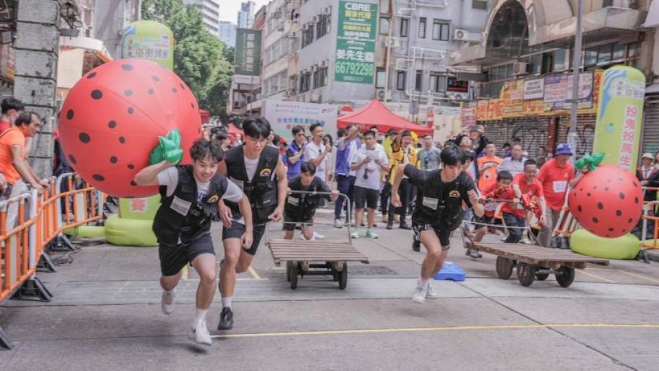 (榕樹頭節)呈現油麻地舊光景,市民推木頭車體驗果欄運生果.