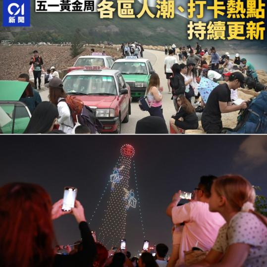 五一黃金周:內地22.1萬遊客來港,無人機煙火表演打卡受歡迎.