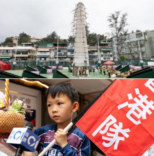 5.5佛誕節長洲舉行太平清醮,下午有飄色巡遊,晚上搶包山.