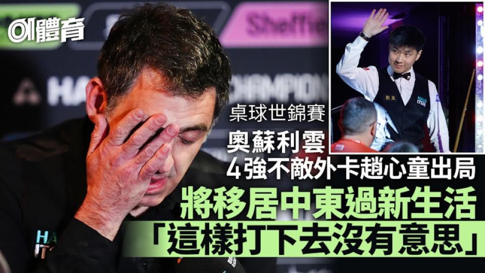 桌球世錦賽:奥蘇利雲四强不敵中國趙心童出局,欲移居中東過新生活.