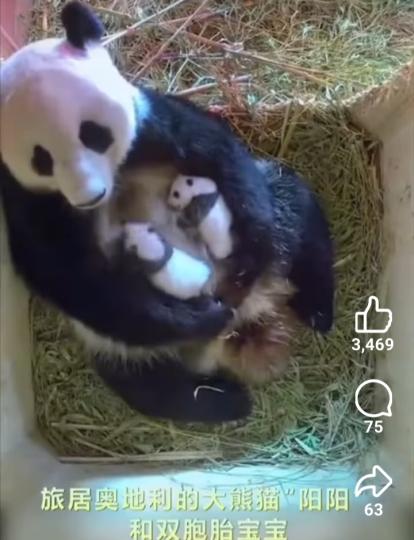 旅居奧地利的大熊猫阳阳和双胞胎宝宝