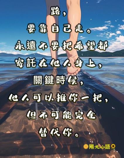 (路),是靠自己走的。其他人可以推你一把。但不可能完全替代你!