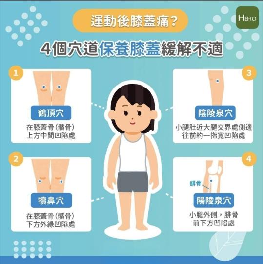 鹤頂穴。陰陵泉穴。犢鼻穴。陽陵泉穴!請大家細看來內文。