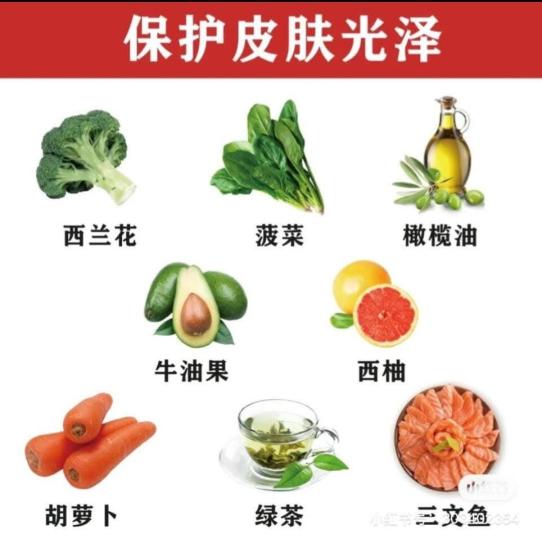 西蘭花,菠菜,橄欖油,牛油果,西柚,紅蘿蔔,綠茶,三文魚等?