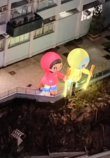 ー雙吹氣公仔威風站立着 , 還以為它多麼厲害 , 實則外強中乾 , 结果一夜狂風便讓它當場破功 , 直接秒變地癱,真是帥不過夜。😀🤣