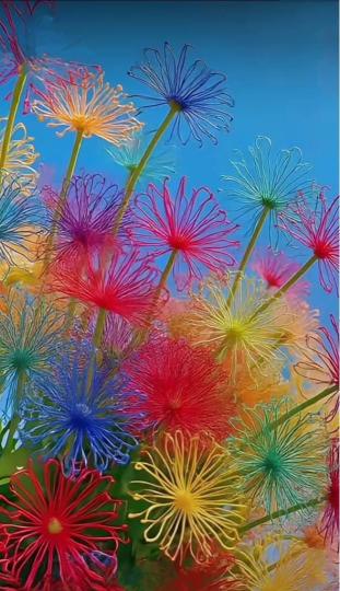 花團錦簇給人一種充滿生機和歡欣的感覺。
