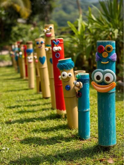 我很欣賞用竹子和粘土打造的花園景觀設計。