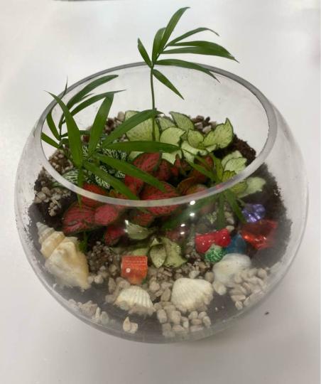 今天上舒緩情緒工作坊做了一瓶景自由創作。我這小花園有小山丘,種了心愛的植物,還有精緻的實物裝飾佈置,很有滿足感。
