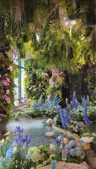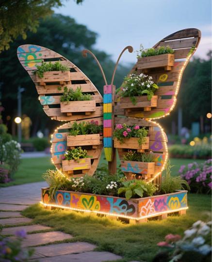 詩意盎然的花園園景蝶舞紛飛中,翩翩起舞的蝴蝶雕塑成為了一景。敦厚的木料、絢麗的彩繪,加之點綴其間的綠植與花卉,黃昏時分,點點燈光映襯下,宛如一幅童話般的畫卷。