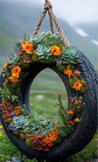 想不到一個棄置的輪呔也可以用花草來作裝飾,成為一環保的佳作。