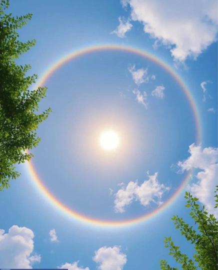 日暈」現象,像是太陽帶上了一頂巨大的光環帽
