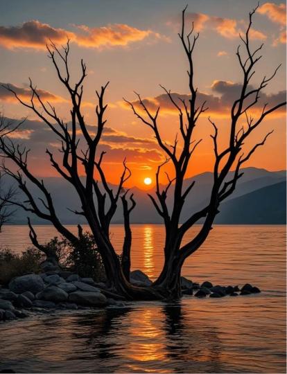 一家人帶着狗狗漫步在湖畔月光下,滿是溫馨