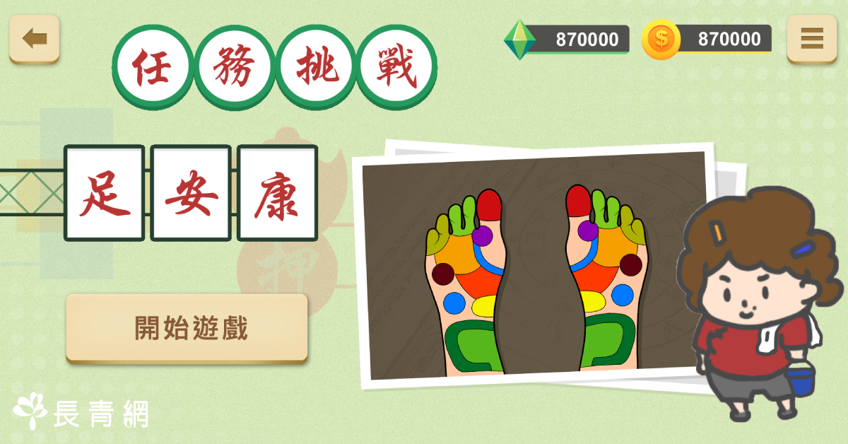 快點登入<<智有腦>>和進入遊戲主頁的「任務挑戰」,清楚記下順師傅(牛頭角順嫂)按過的腳底部位,集中訓練您的記憶力吧!