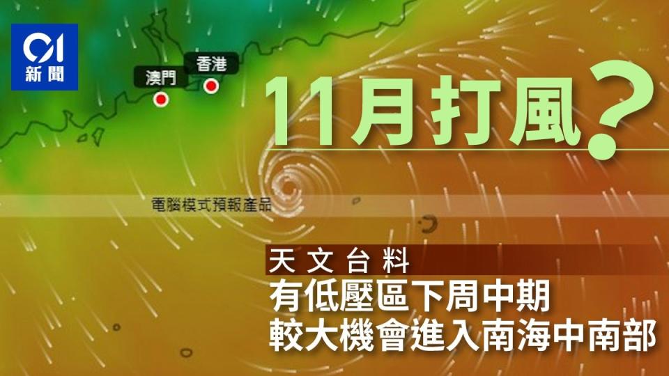 11月打風:天文台料有低壓區下周中期較大機會進入南海中南部