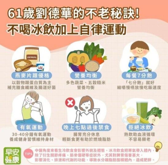 影星60多歲劉德華,不老秘訣:不喝冰水,加上自律運動!請大家細看內文。