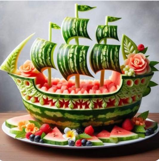 西瓜雕刻藝術 : 帆船!