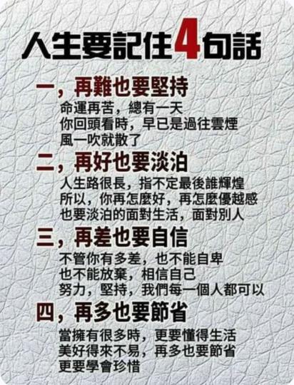 人生要記住4句話: