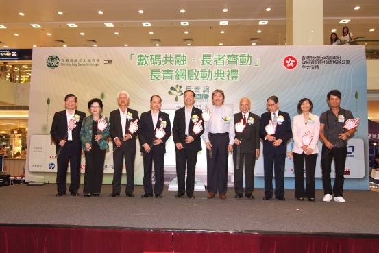 主禮嘉賓、數碼領航總司令及長青網推廣大使進行長青網啟動禮儀式「數碼共融 長者齊動」。