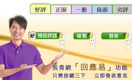 1) 回應功能設於每則文章的最下方,會員只需按一下「預設評語」;