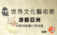 由康樂及文化事務署主辦,兩年一度的「世界文化藝術節」將於10月20日至11月20日舉行。今年主題為「游藝亞洲」,各項演藝節目將會以展現亞洲各地傳統經典為主。