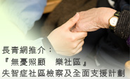 香港耆康老人福利會於2010年獲得香港公益金資助,成立『無憂照顧樂社區』失智症社區檢察及全面支援計劃,目的提升大眾關注老年痴呆症(失智症),並宣揚預防、及早診斷與治療的訊息。