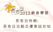今年長者日(11月18日)將以「終身學習」為主題,名為『長者日2012「香港第三齡學苑 知樂自得每一天」』。