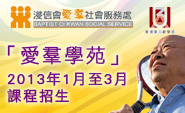 當看到一眾「愛羣學苑」學長努力發展其潛能,不斷學習的精神,相信也能鼓勵你成為當中的一份子,開展燦爛的退休生活。2013年1-3月的愛羣學苑課程即將推出,現在開始接受報名,按此可閱覽更多課程資料。