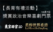 【長青有禮活動】獎賞你政治音樂喜劇門票 《東宮西宮10 悲慘世界香港》