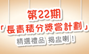 *第二十二期「長青積分獎賞計劃」之截止換領日期為2015年12月1日,各項禮品數量有限,先到先得,換完即止!
