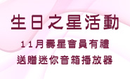 11月壽星會員請注意!如果你是11月生日,即有機會領取實用生日禮物 - 迷你音箱播放器 乙份。