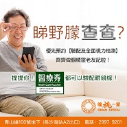 由即日起至2016年11月16日,只要您是長青網讀者/會員便可以優先預約【驗配及全面視力檢測服務】,齊齊做個精靈老友記!全面視力檢測服務包括屈光度數檢查、色覺檢查、立體感測試、眼壓量度、斜視檢測及阿姆斯勒檢查等等,令您更了解眼睛的狀況。