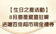 8月壽星會員請注意!如果你是8月生日,即有機會領取實用生日禮物 - 百佳超市現金禮券。