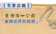 香港濕地公園由11月9日至明年4月,舉辦一年一度的冬季重點活動-觀鳥節。今年,觀鳥節以「雀鳥世界的秘密」為主題,介紹雀鳥各種有趣的身體特徵與行為,令牠們能夠適應環境的,成為大自然裡獨特而成功的一群。