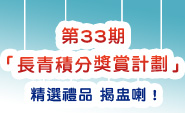*第33期「長青積分獎賞計劃」之截止換領日期為2017年10月13日,各項禮品數量有限,先到先得,換完即止!