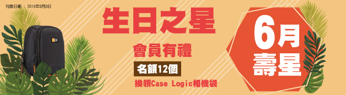 6月壽星會員請注意!如果你是6月生日,即有機會領取優質實用生日禮物 — Case Logic相機袋乙個。