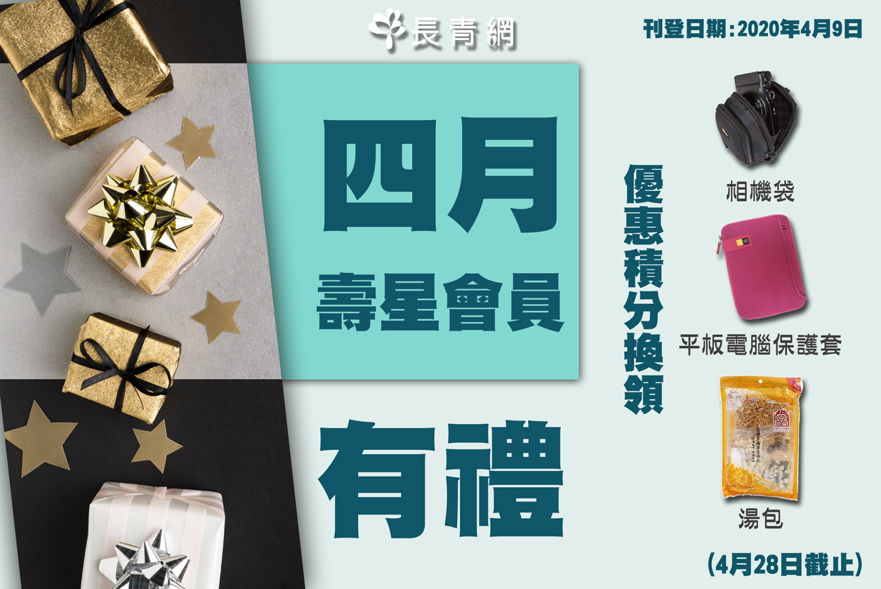 4月壽星會員請注意!如果你是4月生日,即可以優惠積分領取優質實用生日禮物 — 花旗蔘蟲草花湯包乙包 或 Case Logic相機袋乙個 或 Case Logic 7寸平板電腦保護套乙個。