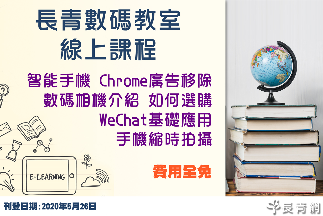 由5月6日(三)開始,我們將會發佈由「長青數碼教室」導師們精心製作的線上學習影片,讓大家在家中學習手機、電腦、攝影等基本技巧,為緊接而來的復課做好準備!