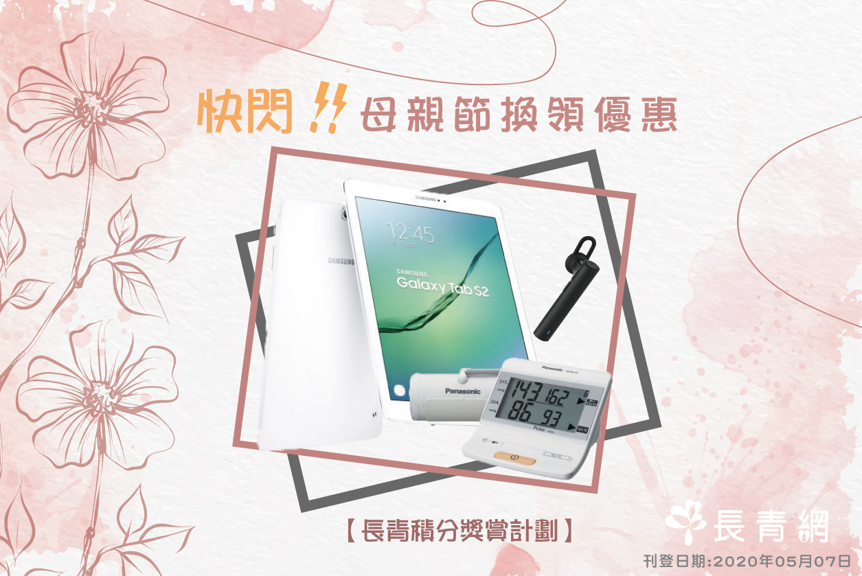不論是順境,還是「疫」境,媽媽總是不辭勞苦的愛護子女。長青積分獎賞計劃特推出節日獎賞,讓各位孝順子女可以優惠積分換領實用的禮物,慰勞為家不懈貢獻的媽媽們。優惠換領禮品包括Samsung Galaxy Tab S2,讓母親享受電子化生活的樂趣。樂聲手臂式電子血壓計,協助您的母親輕鬆量計血壓,時刻關注健康;小米藍牙耳機,讓母親隨時隨地接通家人的來電,保持聯繫。