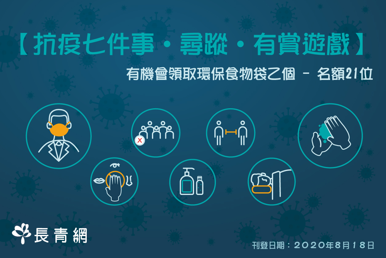 長青網特意推出【抗疫七件事․尋蹤 有賞遊戲】,提醒大家如何在疫情嚴峻的非常時期,能安全及保持正確的生活習慣來抗疫自保,同時讓老友記可以透過瀏覽長青網獲得貼心實用的禮品。遊戲玩法,請參閱以下說明: