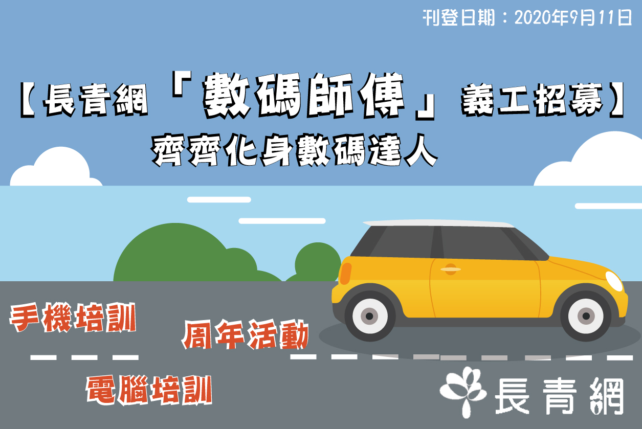 長青網現正招募喜歡上網、喜歡分享和同聲同氣的您成為「數碼師傅」義工,在長青網分享長者生活資訊,如飲食、旅遊心得,並協助推廣長青網。