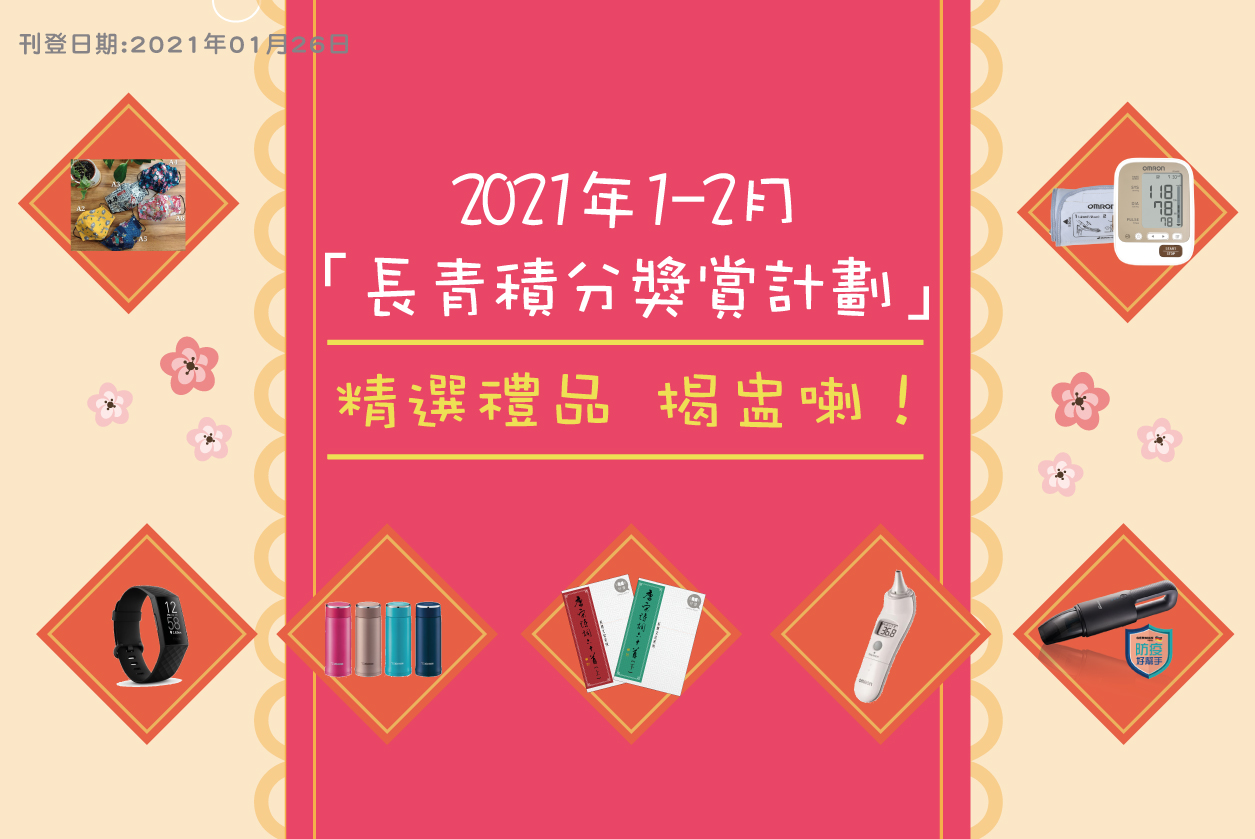 1-2月份「長青積分獎賞計劃」的獎賞禮品出爐了!!