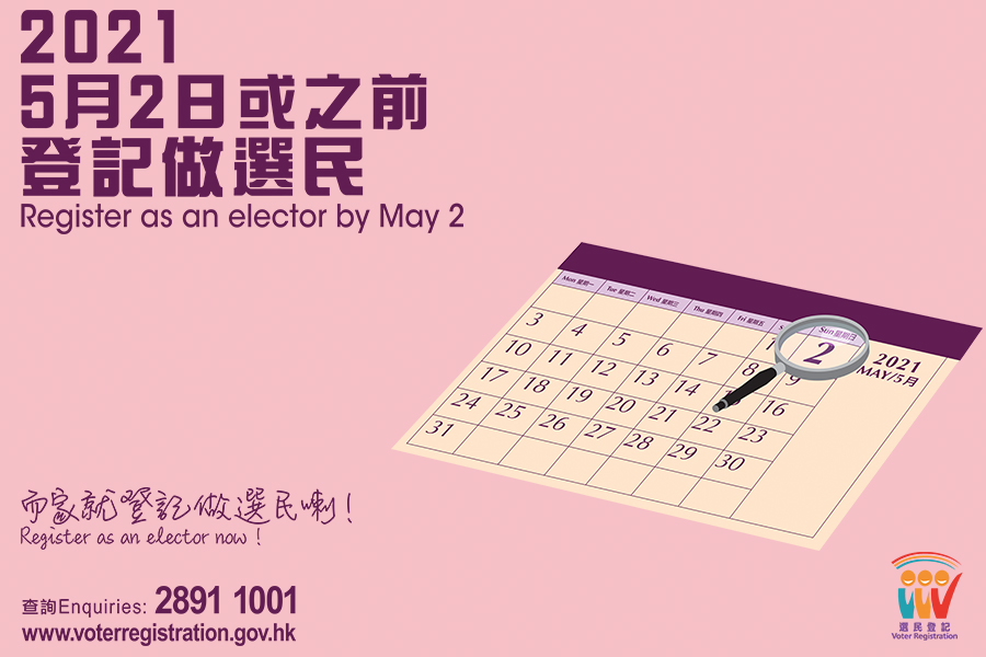 年滿十八歲、通常在香港居住而未登記成為選民的香港永久性居民,記得在五月二日前提交申請。