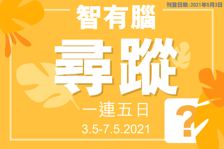 長青網將於2021年5月3日(星期一)至5月7日(星期五)期間,每天定時在下午3時正,於「優惠」、「健康」、「新聞」、「社交」和「學習」欄目中的文章詳情頁內,上載1幅中獎圖案,合共5幅。首三位最快找到當天圖案,並在該詳情頁下成功留言,以及WhatsApp至2344-5123表明參與活動之參加者,每人最多可獲贈50元惠康超級市場現金券(乙份)、長青網多功能雨傘套(乙份)及「智有腦 x 癲噹便攜口罩收納盒」(乙份),而每幅圖案只限3名得獎者,合共得獎名額15名。