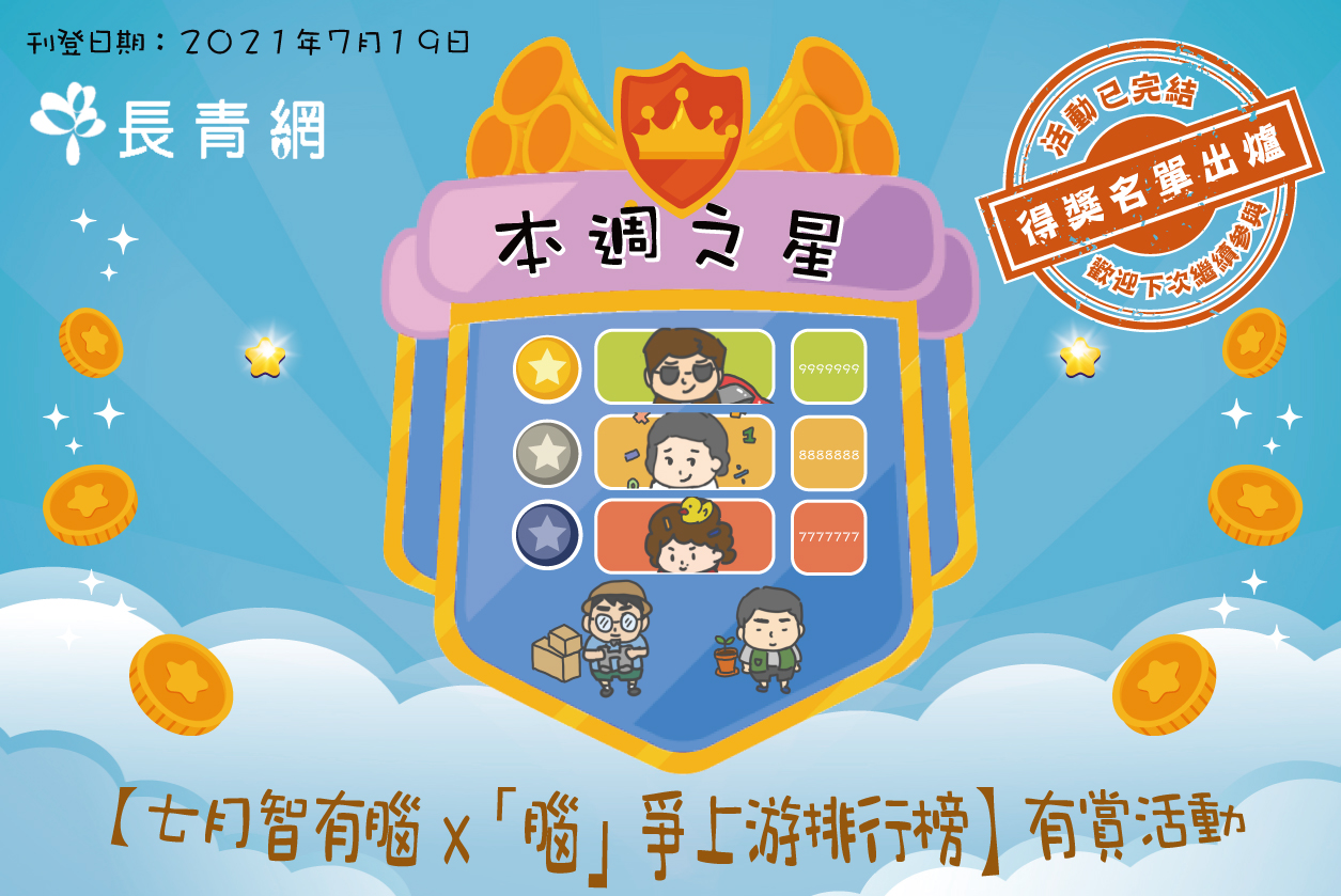 領獎通知:長青網/智有腦將於2021年7月30日或之前,以WhatsApp或致電通知得獎者領獎事宜。若職員未能於限期內聯絡得獎者,則作放棄禮品處理。