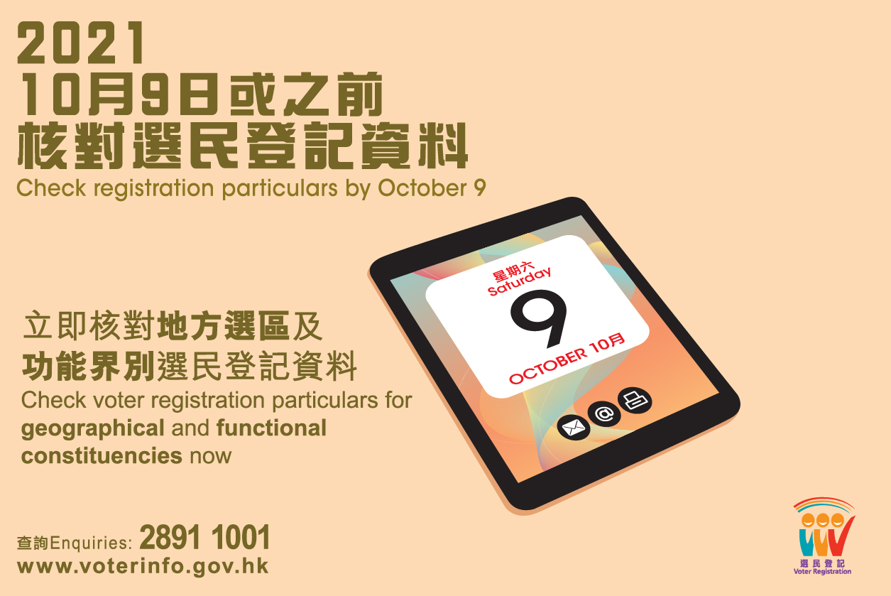 二O二一年地方選區和功能界別臨時選民登記冊及取消登記名單已於九月二十六日發表。