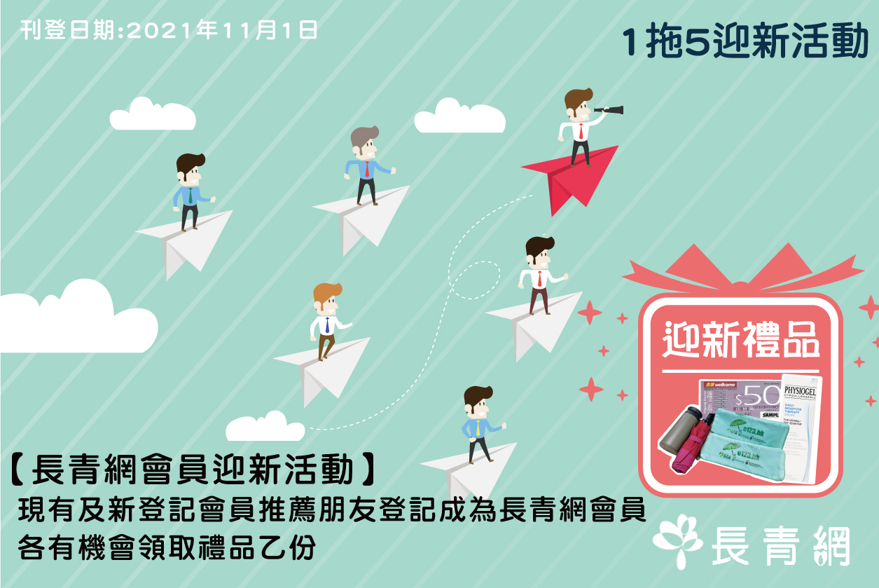 現有/新登記長青網會員成功推薦5位親友首次登記成為長青網會員,
